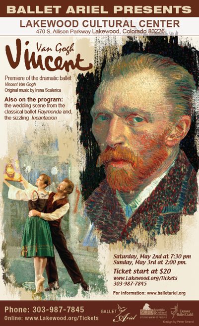 This dramatic ballet explores the turmoil and tragedy that marked the career of the genius artist Vincent Van Gogh. His unfulfilled love life and passionate follies are danced in a series of emotional duets. The tender and supportive relationship with his brother Theo is thoughtfully portrayed in the ballet. The tension in the ballet builds, while living together with Paul Gaugain in the south of France, he has his first episode of madness and self-mutilation.