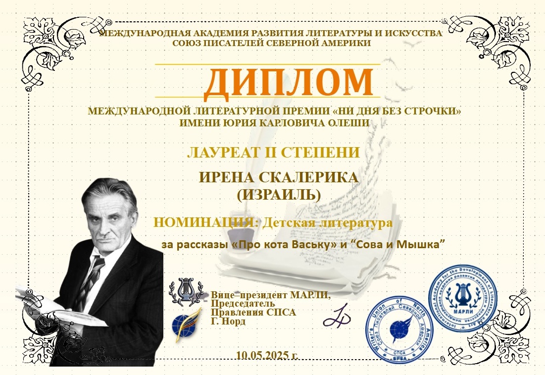 More good news: I received Second Prize in the same competition for two of my short storiesβ